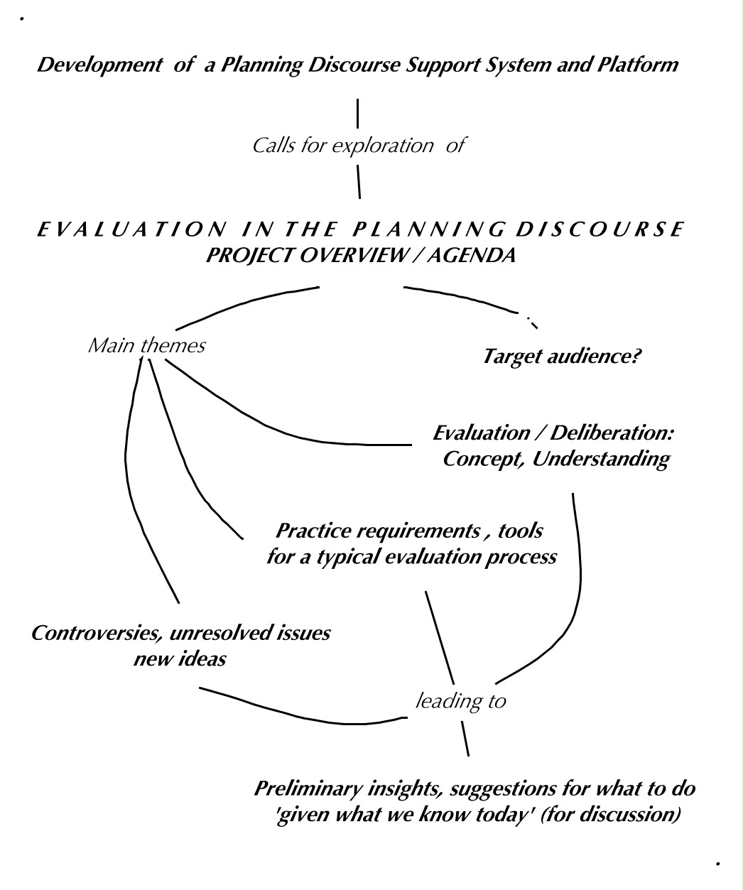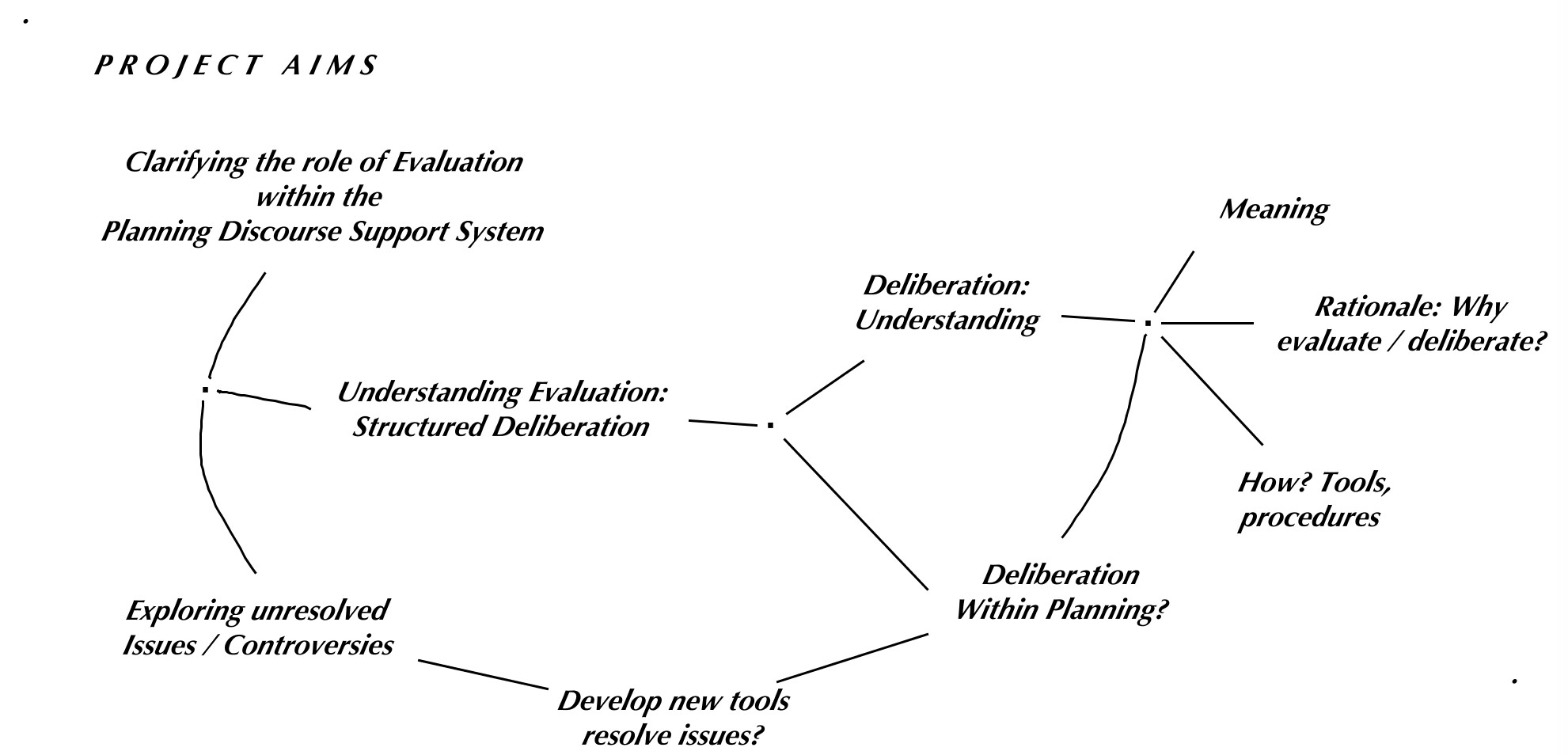 These issues and controversies need to be examined not only individually but also how they relate to one another and how they should guide evaluation procedures in the planning discourse. The diagram shows a number of them and some relationships adding to the complexity, there are probably more that should be added to the list.