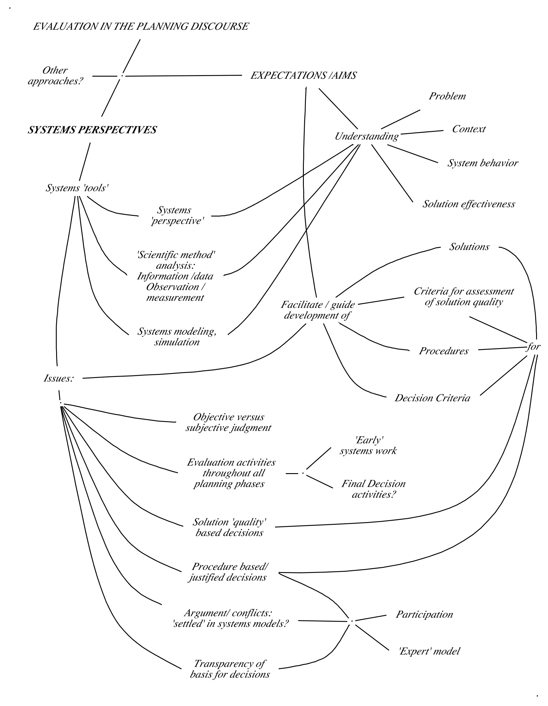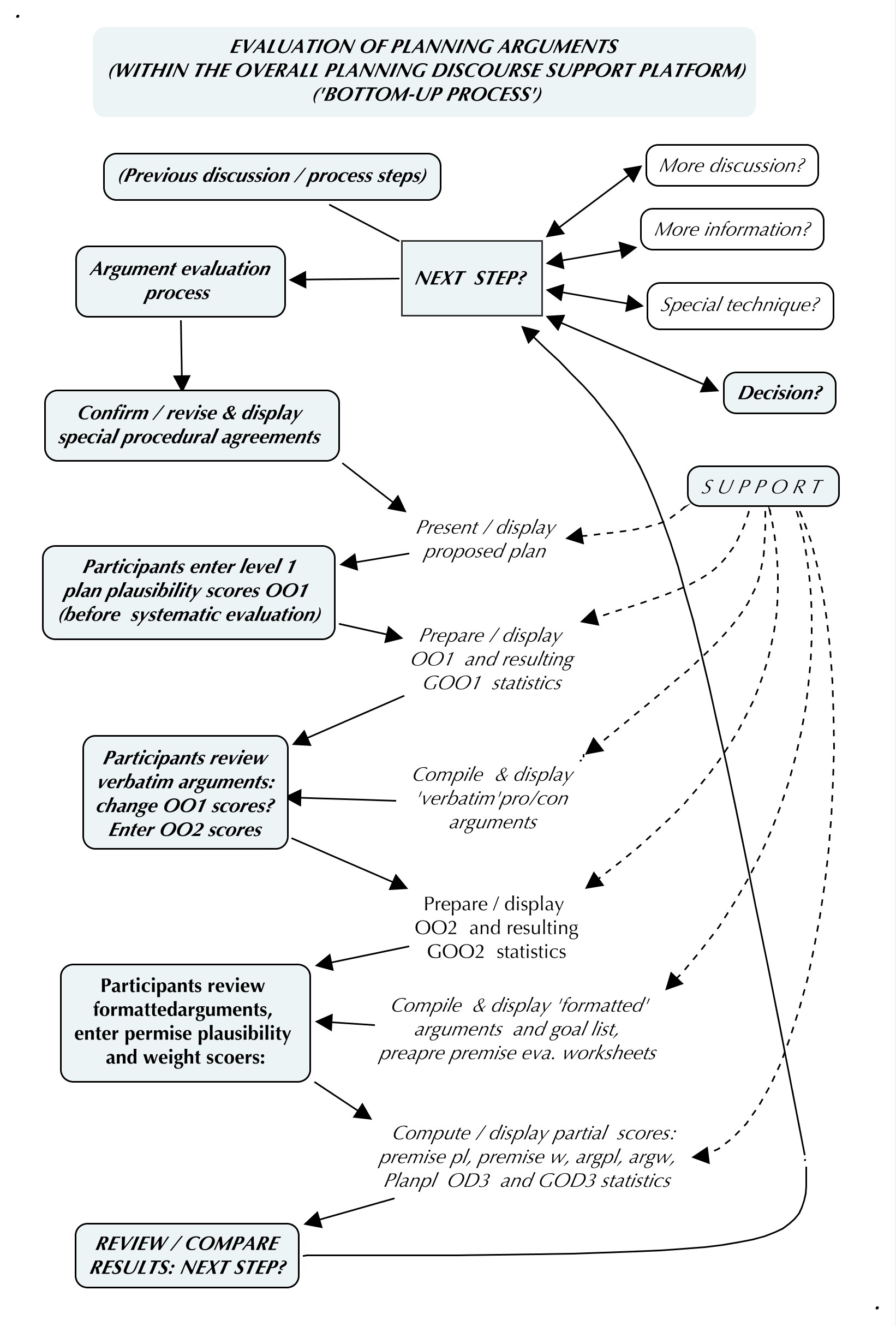 – Okay. Remember, a person’s comments to the planning discourse, that is, to a discussion about whether a proposed plan should be adopted for implementation, can be roughly distinguished as three kinds of claims, premises, of arguments: One that claims that the plan A (or some plan detail) will lead to some outcome, result, consequence. B, given some conditions C. Another claim is about whether B ought to be aimed for or not; and the third is about whether the conditions C under which A will produce B are actually present or will be present when the plan is implemented.